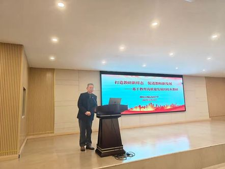 随后,我校未来教育研究院邹国金教授进行点评。邹教授充分肯定了两位教师的教学展示,赞赏大家重视诗词朗读,善于在朗读中发现问题;自然引发学生思考,以知人论世的方法深入理解词人形象。还就“学生如何学”话题,结合个人教学经验提出了建设性的建议。