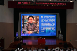 在工作室主持人主旨发言环节,南宁一中廖寿传、崇左市教科所姚静、百色市教科所农必合、防城港市实验高级中学章太长、柳州三十九中黄鹤、桂林市教科所余敬敏、玉林市玉州区教育研究室黄卫华、梧州市蒙山县教育研究室廖代璇、来宾市兴宾区教育研究发展中心杨凤娥等八位工作室负责人立足具体实践,聚焦教师发展痛点,就教师专业成长与教学改革两项内容进行了经验分享,为各地区教师教研教学成长提供了可借鉴的路径,形成协同发展的合力,加强了历史教师专业共同体建设。