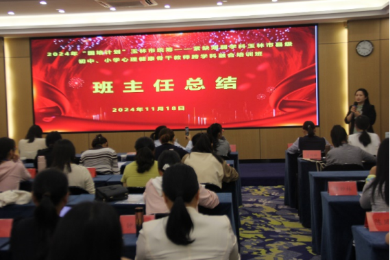随后,班主任韦心勤老师做了总结发言。她对所有学员的努力和参与表示了充分的肯定,并指出,心理健康教育已成为现代教育中不可或缺的重要组成部分。她强调,这次培训不仅提升了学员们的专业知识和教学能力,还增强了他们的责任感和使命感。韦老师特别提到,心理健康教育不仅需要扎实的理论支持,更需要在实际教学中不断探索和创新。她鼓励学员们将所学知识与技能融入到日常教学中,推动学校心理健康教育的进一步发展。